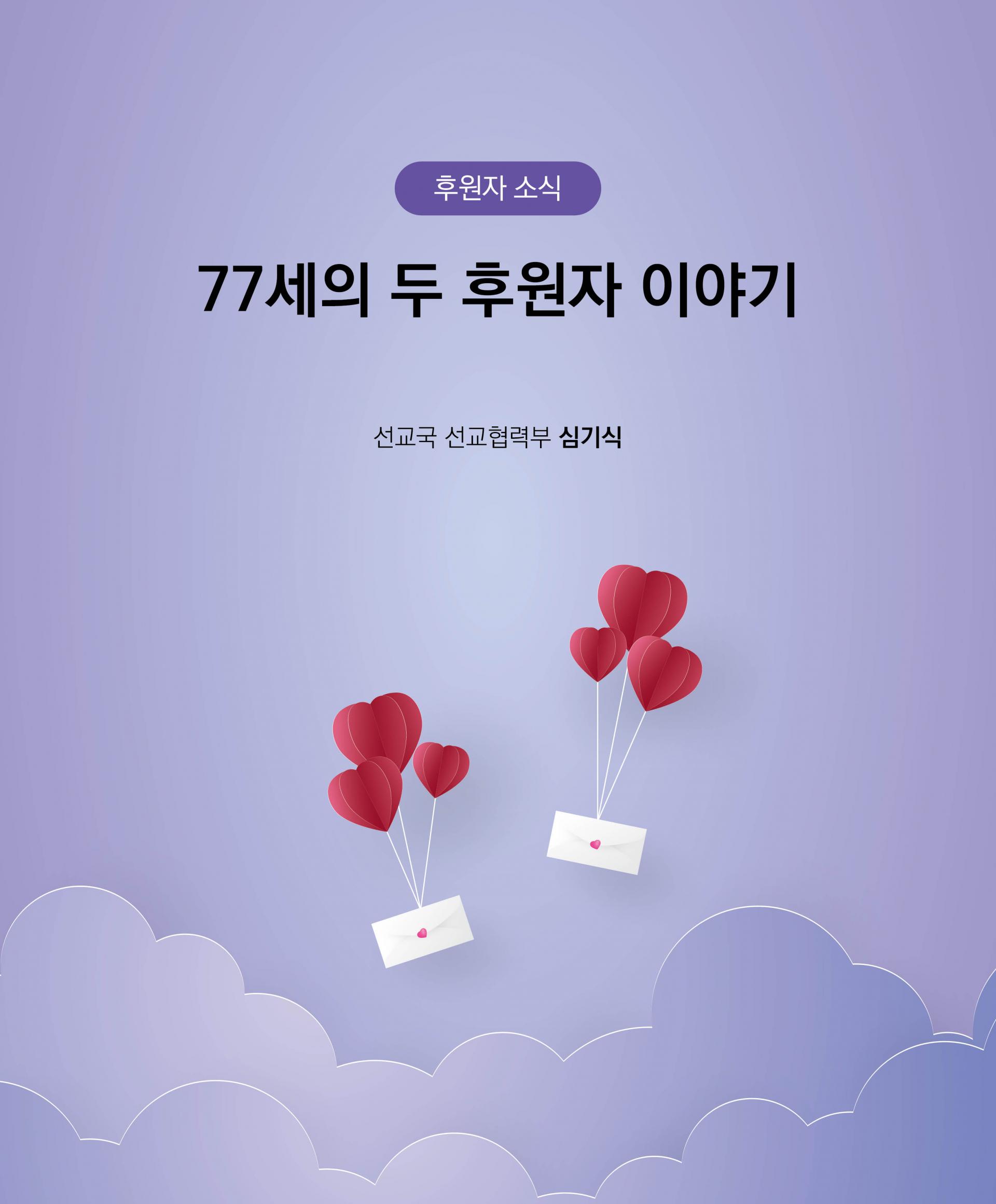 수많은 후원자분들이 정성껏 기도하며 가진 것을 후원해 주고 계시지만 이번에 만난 두 분은 더욱 특별하게 가슴에 남을 것 같습니다. 우연히도 두 분 모두 77세이시고 건강이 매우 안 좋은 상태이신데 가진 것을 본인의 것이라 생각지 않고 하나님의 일에 모두 내어주시니 자신의 전부를 드렸던 과부의 두 렙돈처럼, 이 두 분의 헌금은 천하보다도 귀한 헌금임에 틀림없습니다.